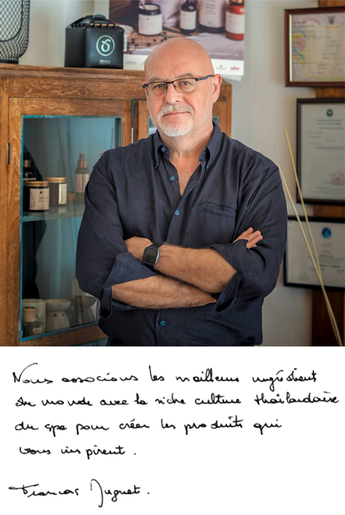 オーナーであり、開発者の “Francois Muget”。世界中からチョイスした最高の原料と、スパ文化を融合させ「 Inspire」(心に感じる)商品を構築しています。